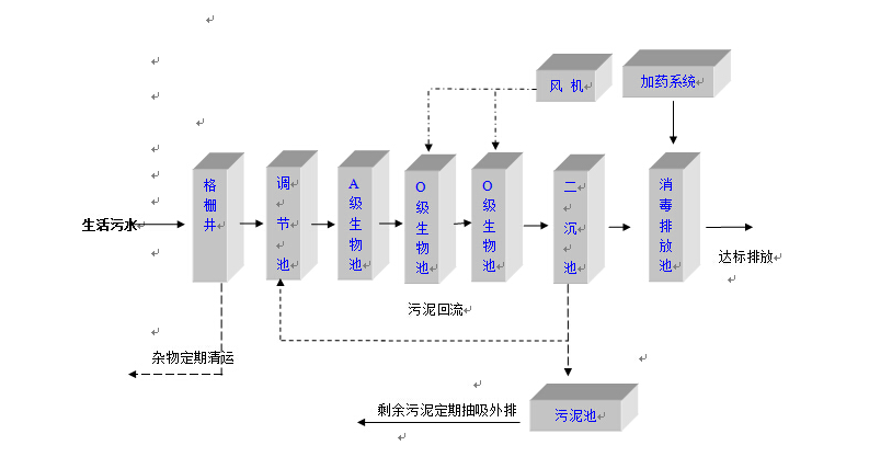 b、生化池采用生物接觸氧化法,其填料的體積負(fù)荷比較低,微生物處于自身氧化階斷,產(chǎn)泥量少,僅需三個月(90天)以上排次泥(用糞車抽吸或脫水成泥餅外運)。
